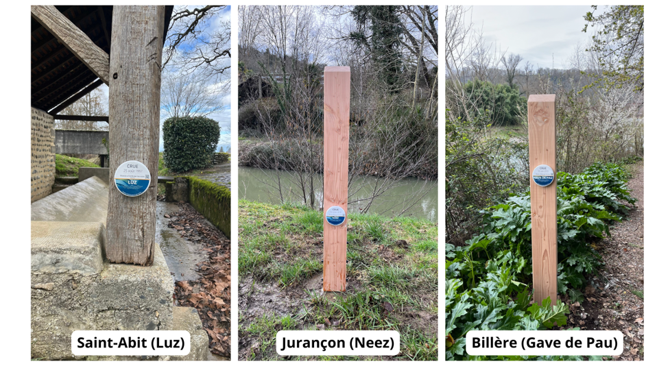Ces repères matérialisent les débordements de plusieurs cours d’eau du territoire : la Baïse, le gave de Pau, le Luz et le Neez.